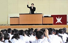 【CSRレポート】越谷市立大袋中学校の学校集会に、GREEパトロールのマネージャーが登壇しました